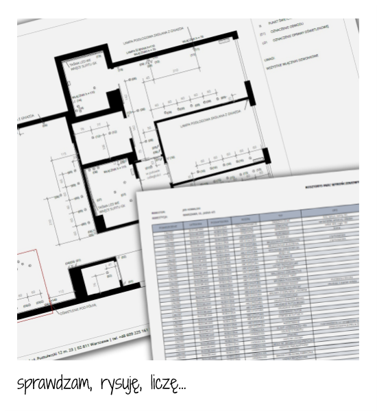 Przygotowuję DOKUMENTACJĘ WYKONAWCZĄ, czyli komplet rysunków dla ekip branżowych oraz tabelaryczne zestawienie wszystkich materiałów budowlanych, wykończeniowych, zabudów i mebli wraz z wyceną oraz informacją o miejscu ich zakupu.
